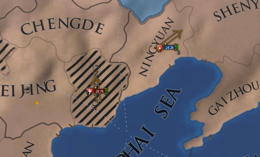 t.png 北京は城壁破壊・強襲ですぐに奪還したが、肝心の反乱軍が突然瓦剌(オイラト)方面に走り出したぞ。*10明領の外は占領しないようだが、何をするつもりだ?