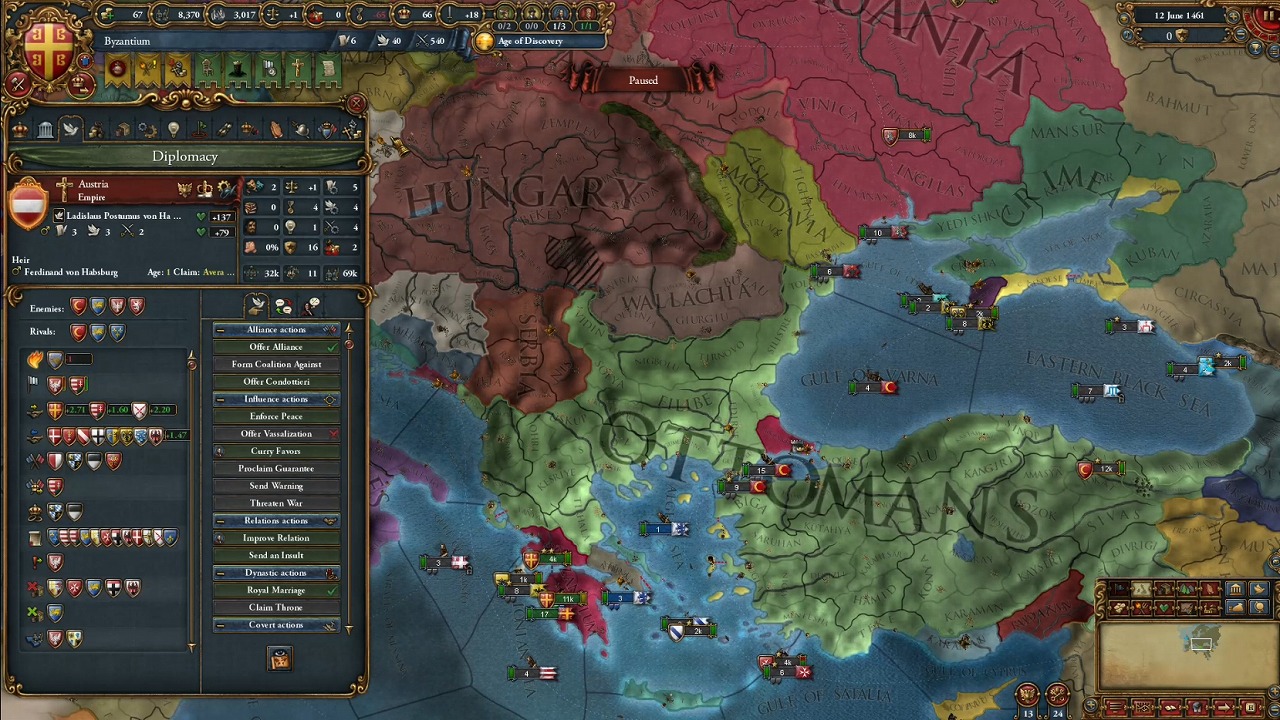 またハンガリーやオーストリアなどにCurry Favor(要Leviathan)しておくと、オスマン戦への移行がスムーズになります。