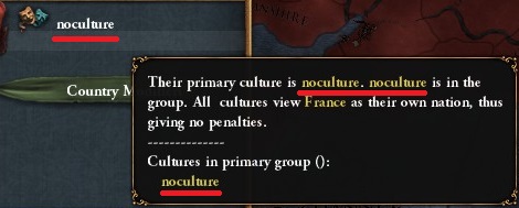 通常は「french」などが表示される国家タブの文化欄が「noculture」になっていれば、MODがきちんと読み込まれていることになります。