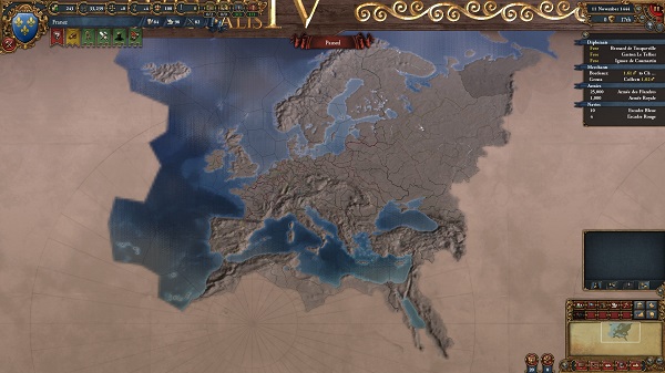 実際に改変がゲームに反映されるかを確認するため、このMODをランチャーで起動し任意の国家を選んでゲームを開始します。