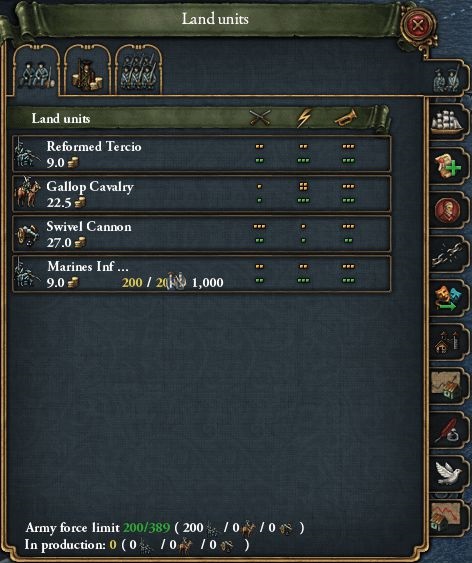 自国の陸軍扶養限界に占められる海兵隊の比率が定められており、その基本値は0%なので殆どの国では生産できない。