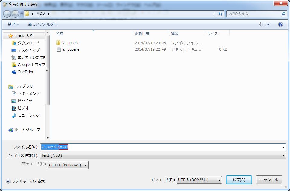 次に「la_pucelle」のテキストファイルを開いて下記の文章をコピーして貼り付けてください。