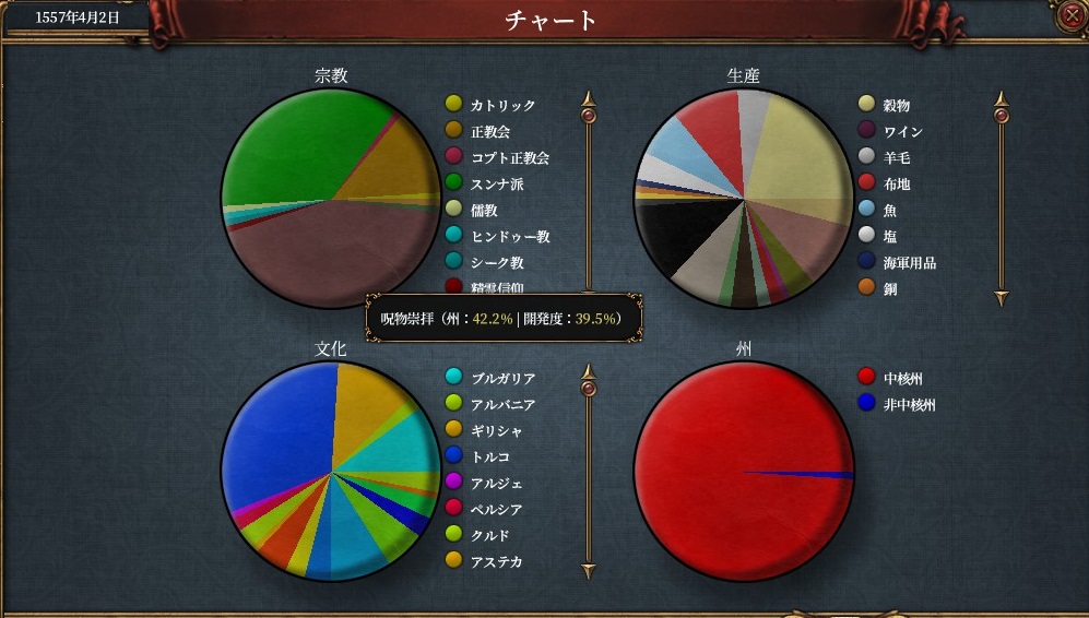 ただ異なる特徴としては、君主点の貢納がない代わりに、交易力の半分を貰えて宗教を強制*2することができます。