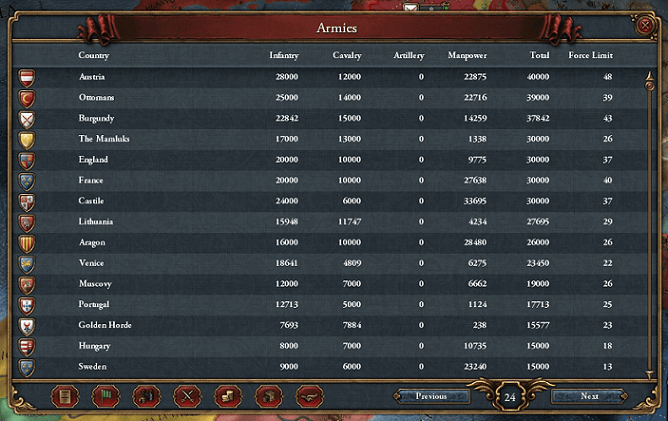 NFはDIPのペナルティーを打ち消すためにDIPに設定してるけれど、エンリケ4世のADM5 DIP2 MIL5っていう能力値もあって、ADMとMILは最新技術についていった上で余裕が出てきたけど、DIPは全然足らないのよね。