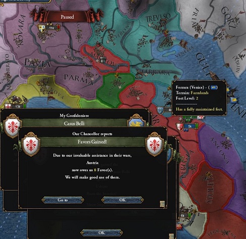 請求権もFerraraのコア州もあるので,どこかしら土地をくれそうだ.(別に土地を約束されてはいない)