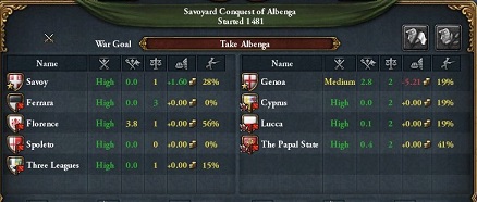 Savoyから対Genoa戦のお誘い.CorsicaにStrategic Interestを付けておく.