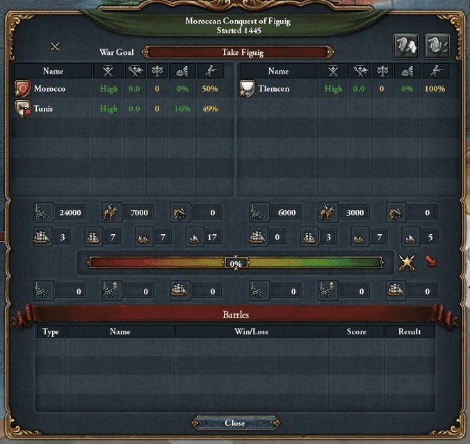 正直国力差から言って独力で楽勝なのだが、チュニジアに便乗参戦されて勝手に領土を切り取られるのが嫌だったので、領土を割譲する約束をしてチュニジアも誘った。