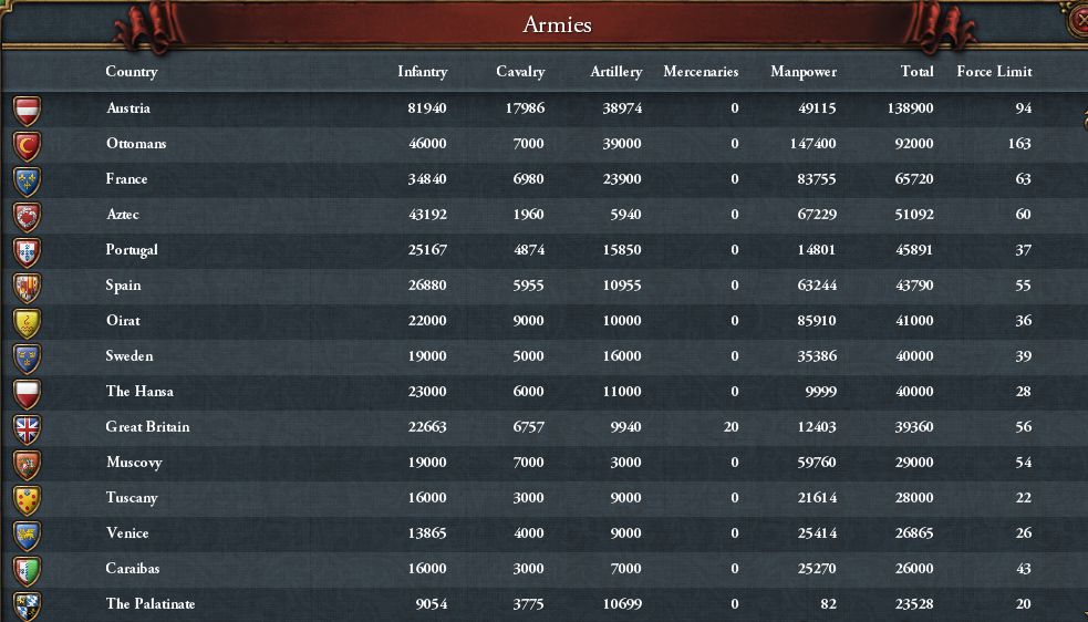 歩兵の数こそ2倍差だが、馬と大砲は比べ物にならない