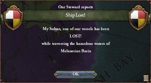 少し飛んで、1534年。フィリピンへの植民も終わり、そろそろ手頃な植民地がなくなってきたMalayaは、Berqueに優秀な航海士を載せ、新たな土地を求め大海原へと旅立たせます。