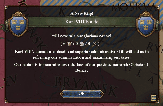 新国王のカール八世の能力値は ADM6 DIP0 MIL0 とまた随分と極端だな。