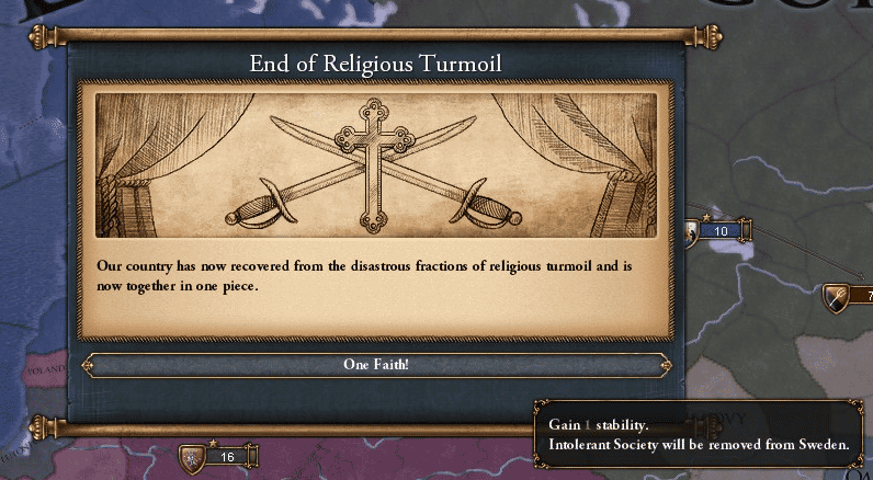 安定度上昇コスト25%減やら自分の宗派の寛容度+1であるとか、異端・異教への便利なCBであるとか、もともと有用なアイディアが多いから十分合理的な選択と言えるだろう。