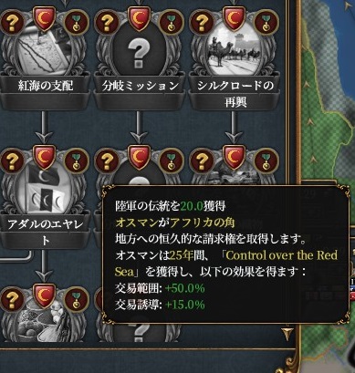 それに続くミッションではペルシア20州(直轄)保有でホラーサーン地方とコア化/併合コスト-5%が50年貰えます。永続ならなぁ。
