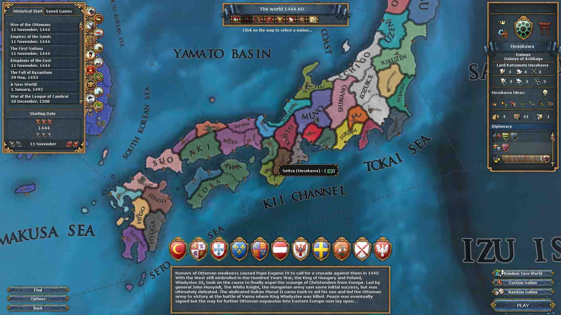 EU4の中でも特殊なルールとなる大名プレイでは一番難易度が低いと思います。