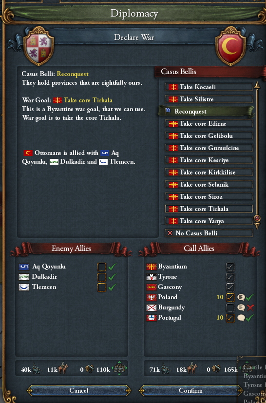 ver1.31からですが、オスマンがビザンツに布告してから属国化するいわゆる「ビザンツトラップ」はする必要ありません。1.31は同盟国の好感度がガンガン溜まるため、同盟国がホイホイ対オスマン戦に付いてきてくれるので。