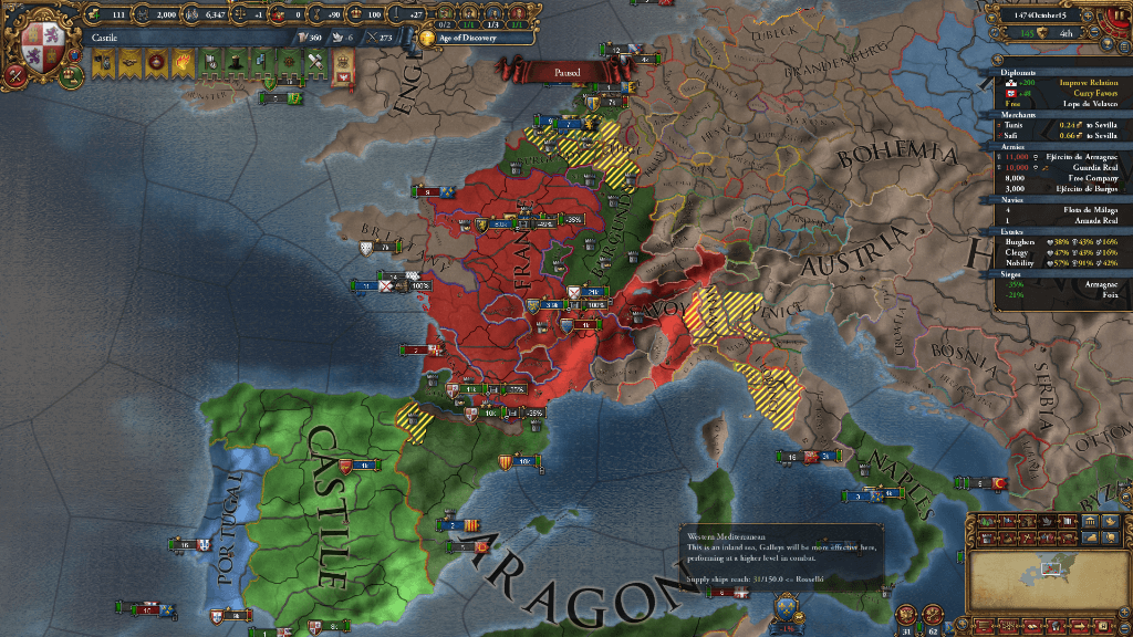 イベリアンウェディングが発生し、アラゴン、およびアラゴンの同君下であったナポリをまとめて同君下に収めました。写真はびっくりして撮り忘れました。