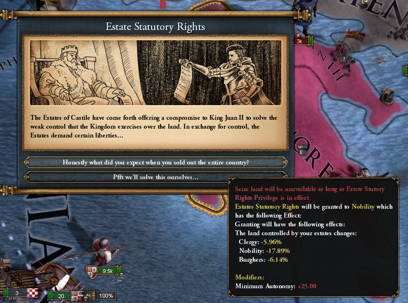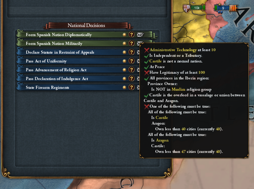 モロッコやらトレムセンの領土をアラゴンに渡し続けていたら、ディシジョンによるスペイン変態条件の「アラゴンの州が40未満」に引っかかっちゃいました。やっちゃった。