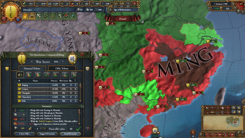5.今後、明からはArea単位でProvinceを取得し、残りは十年間の賠償金と即金を貰う。