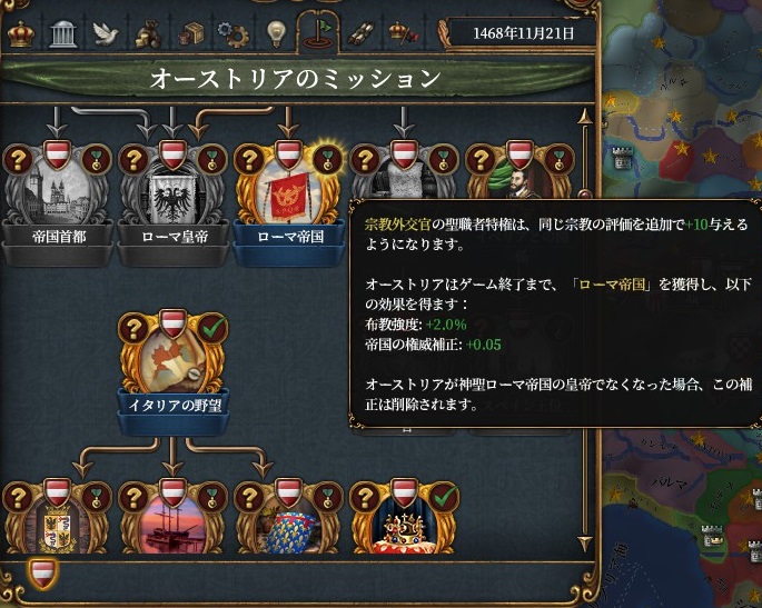 そして、ローマがHREに属しHRE諸侯によって統治されているので、ミッション「ローマ帝国」を達成