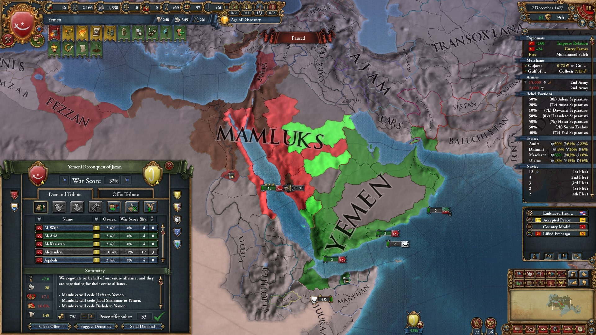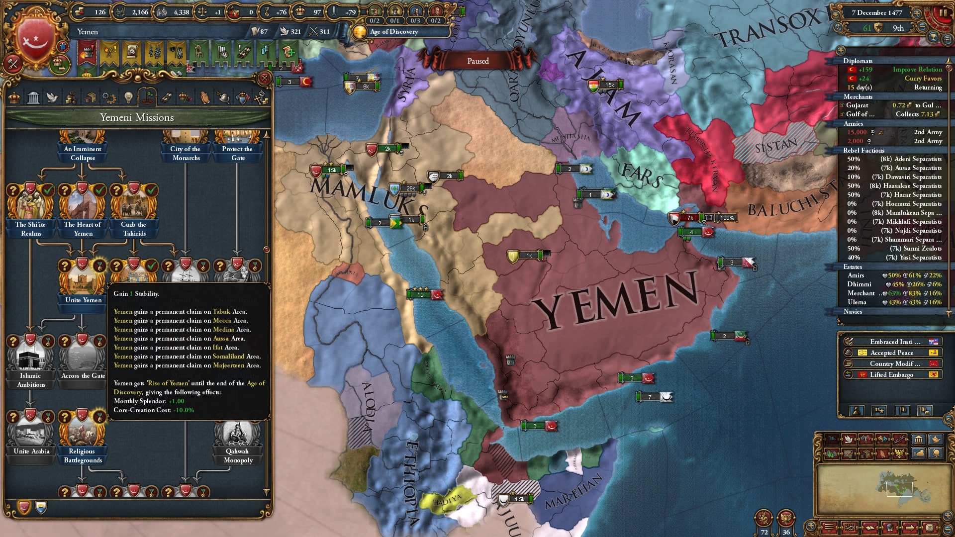 属国化したダワーシルのCBを使ってナジュラーン→ラシード&ミフラフと戦争、ラシードを属国化したらイエメン・ハドラマウト・アデン+αが釣れました。