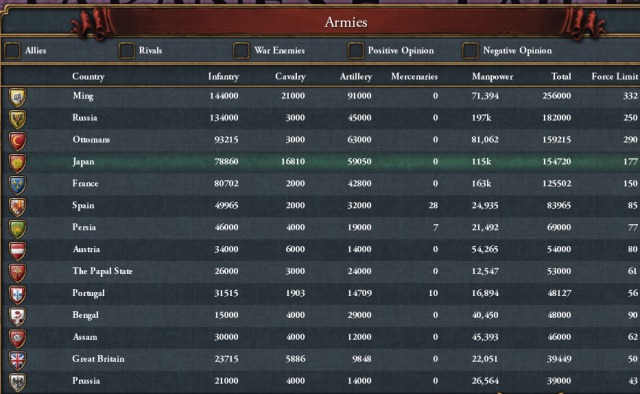 日本は足利義晴の長期に渡る治世において大きく領土を拡大し国力を大幅に向上させた。