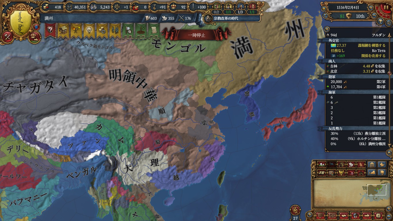 満洲に変態したのでミッションからドルゴンと軍質補正を受け取り、天命CBで明に宣戦。