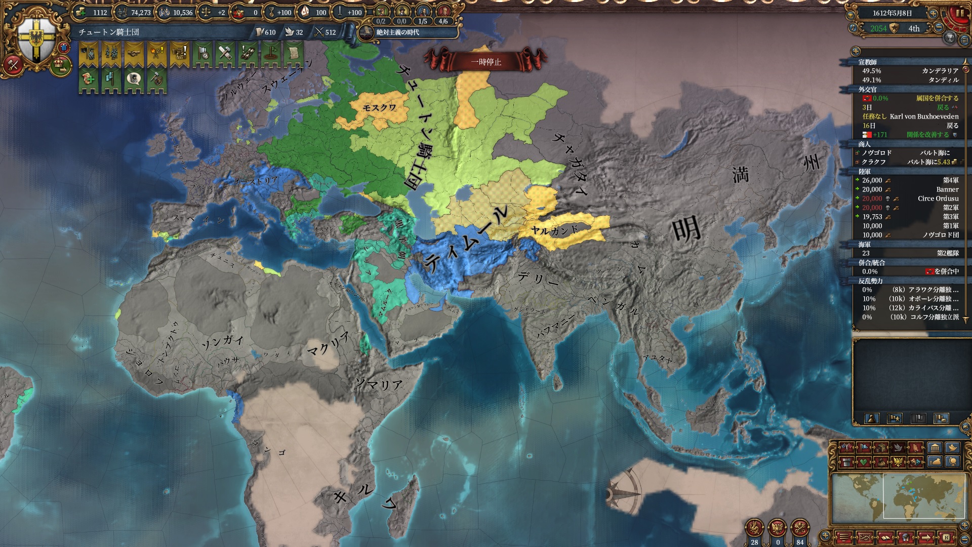 マムルーク併合さえ済ませばそろそろ取れるHoly Hordeで思う存分南下出来るので待ち遠しいですね。