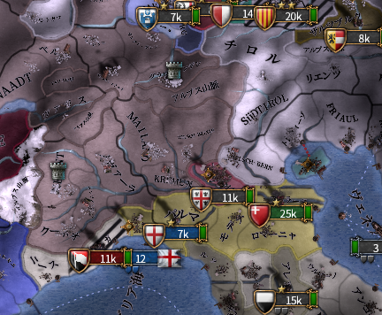 かなづちのオットー公のためにロマーニャなどのイタリア沿岸プロビは全て属国ジェノヴァに預けてあります。