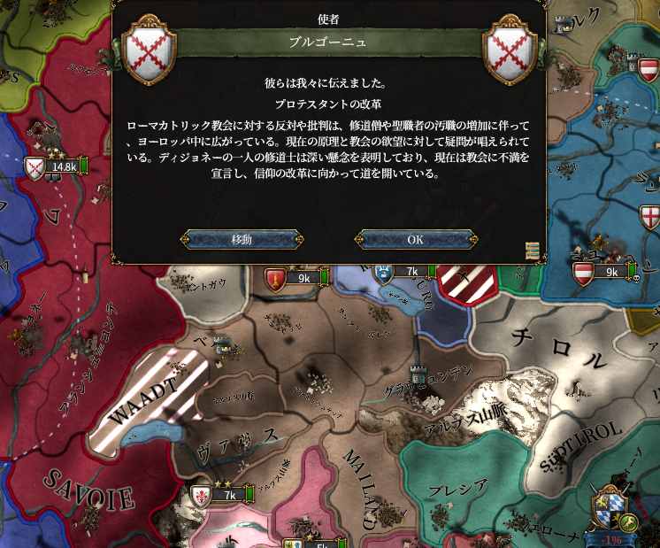 あれでブルゴーニュも吹っ切れたようでプファルツ戦中に宗教改革が発生しておりました。