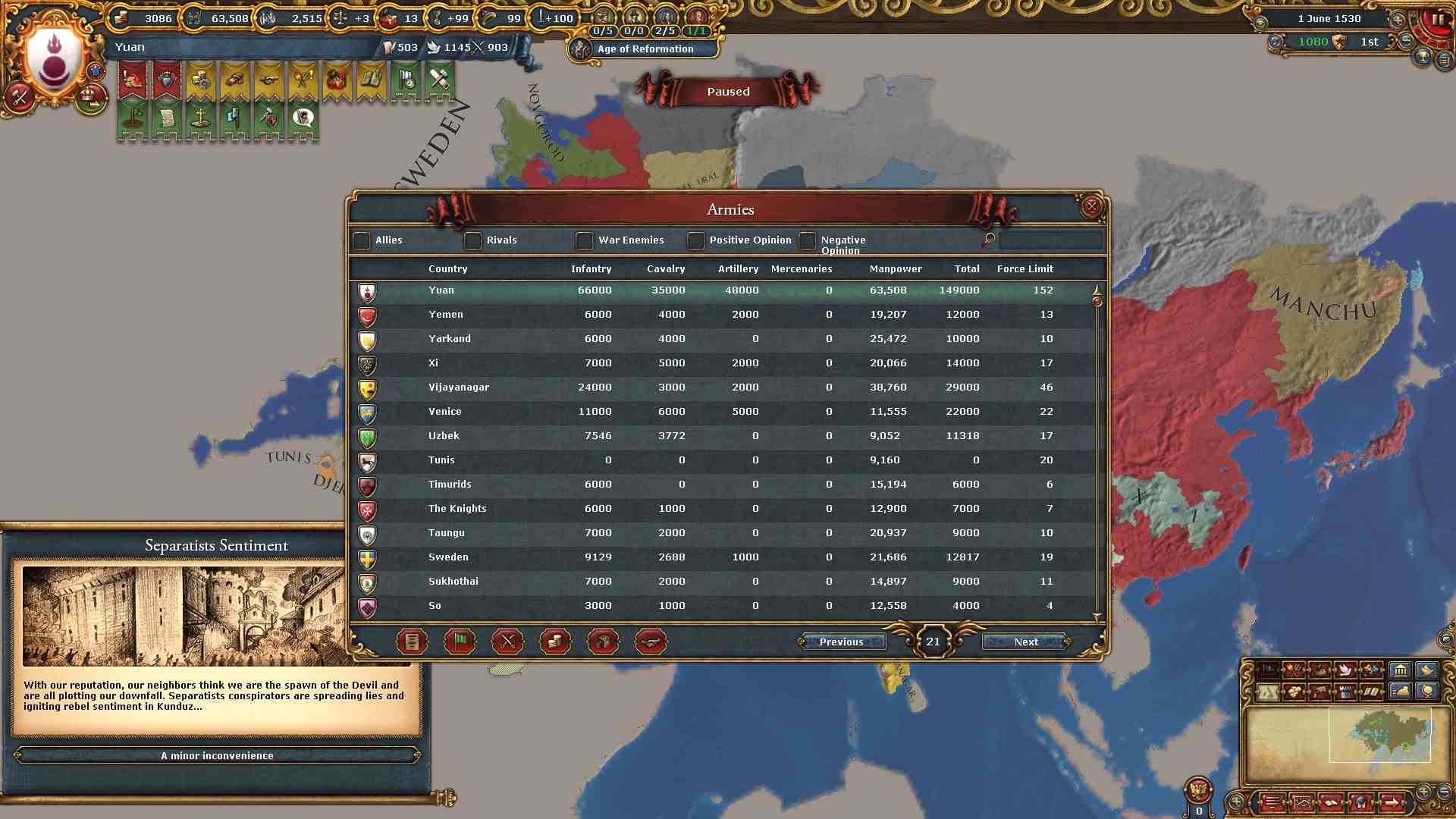 同盟:ベンガル、マルワ、ボヘミア、日本、アヴァ