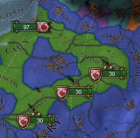 たとえば、v1.4時代ならばイギリスプレイで開幕百年戦争でフランスを同君下に置いた場合、それを維持して併合するのに特に問題はなかった。