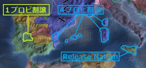 今回はAragonに的を絞り、地中海の島々を割譲させ
