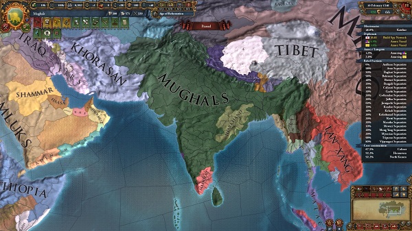 ゲーム開始時でのTimuridの属国はTransoxiana、Khorasan、Fars、Afghanistan、Sistanの5つですが、インドに進出するのが容易なのはTransoxianaかAfghanistanです。