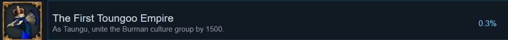 たった1プロビの小国が東南アジアで最大の帝国を築く史実を辿りつつ、高難易度実績の一つである"The First Toungoo Empire"の解除を目指します。