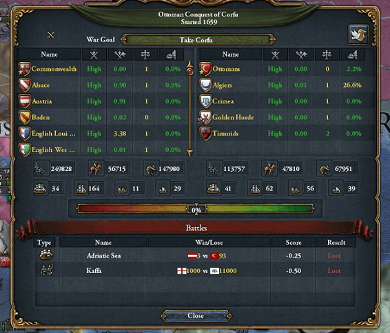 ポルトガル海軍がオスマンの港を封鎖し、コモンウェルス軍とオーストリア軍は連携を取りながら首都イスタンブールに迫ります。