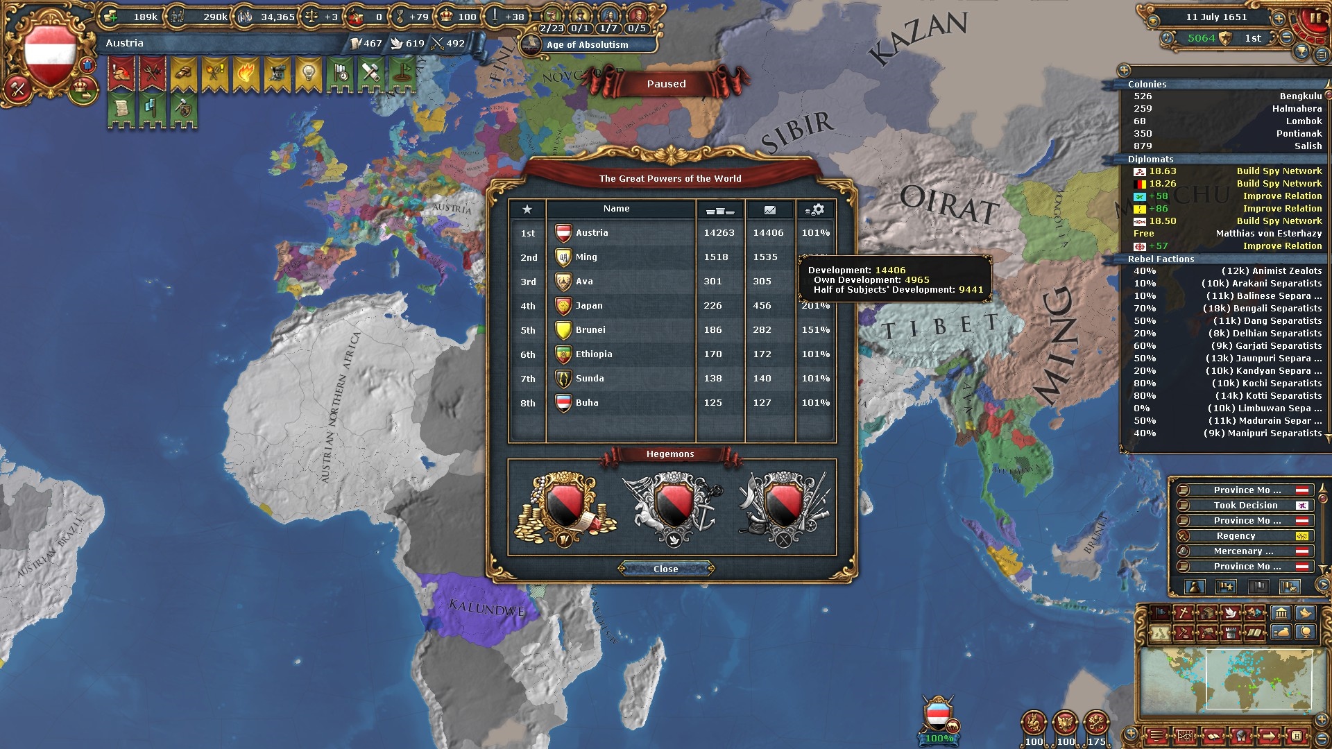 絶対主義値により統治効率が上がっているので、拡大スピードが上がっています。
