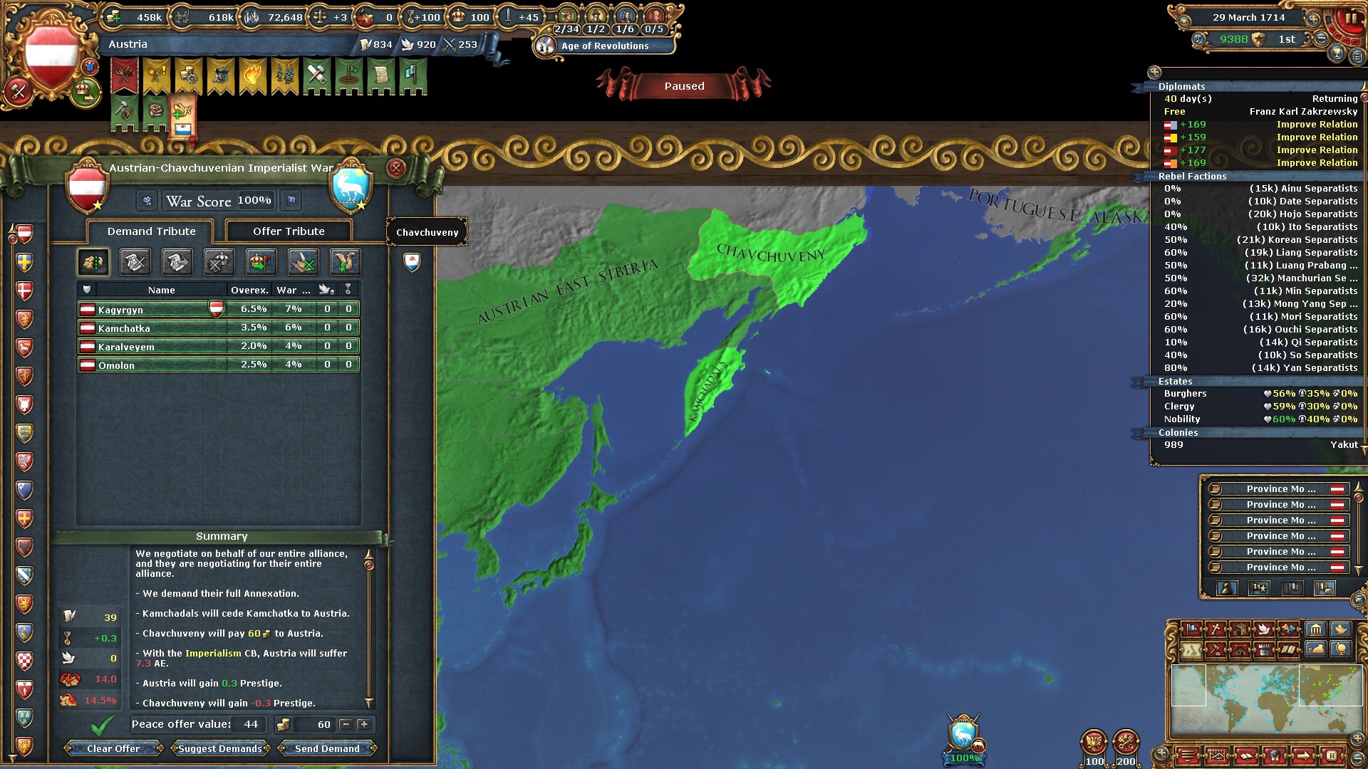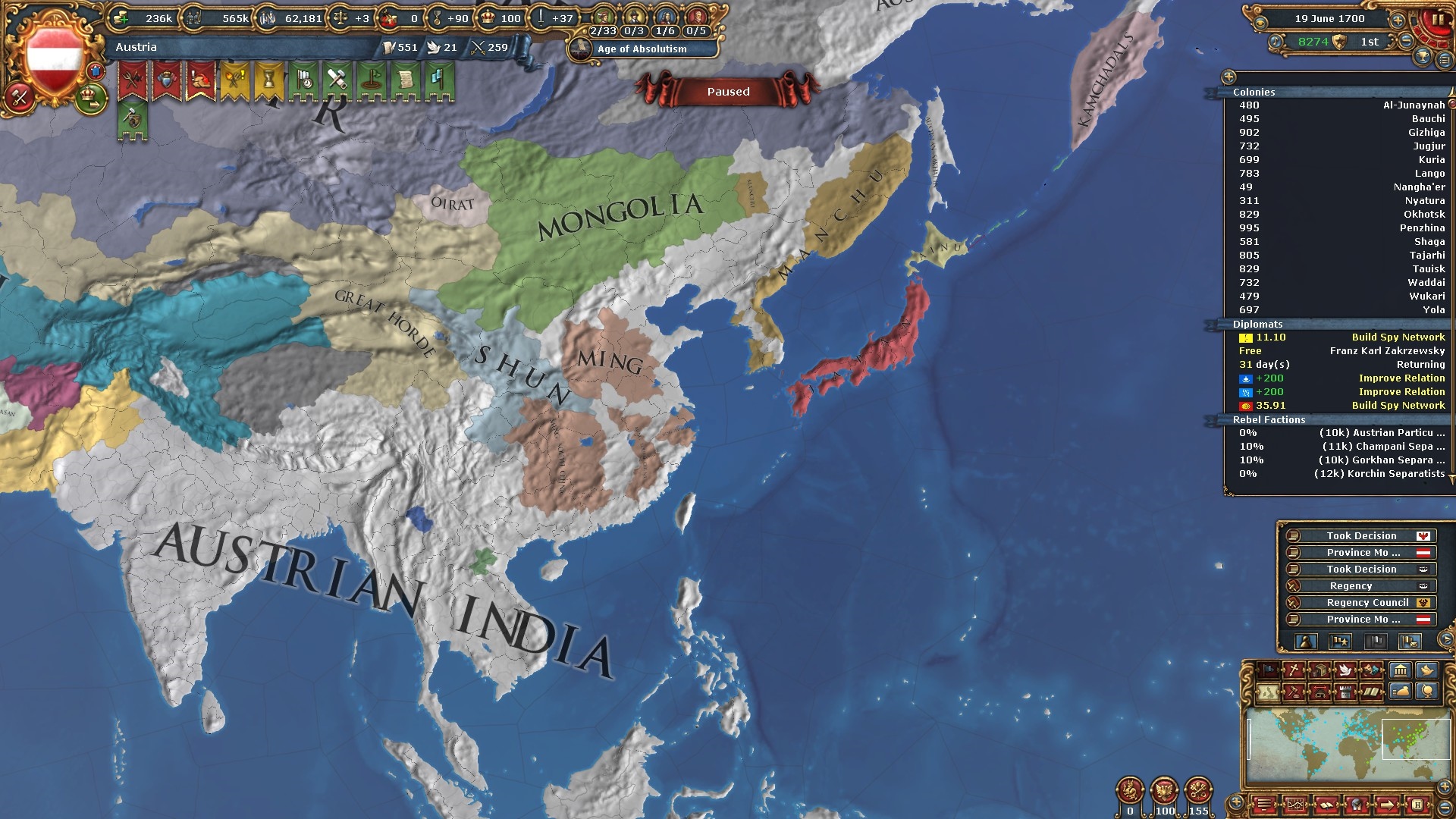 オーストリアは自身のミッションも強化されたので、世界征服を達成するには一番難易度が低い国家だと思います。