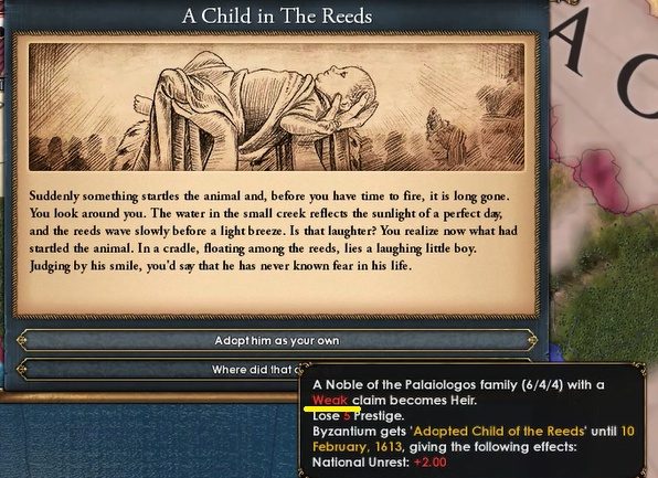 Ioannes11世はイベントで登場した、「能力は優秀だが継承権が弱い」君主だったんです。164.jpg(ここから数えて下から3つめのSS)を見るとわかる通り即位するとLegitimacyが20まで落ちています。