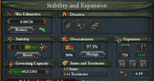 アジア・アフリカの旧属国領などをステートに昇格していれば収入や人的資源は更に増えたかもしれないが、既にどちらも十分確保済みで面倒だったのでしなかった