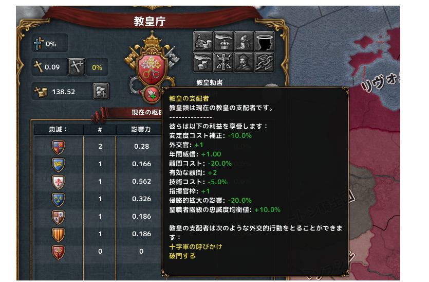カトリックの教皇システムによって【併合コスト-15%】なりなんなりを使用可能だ。