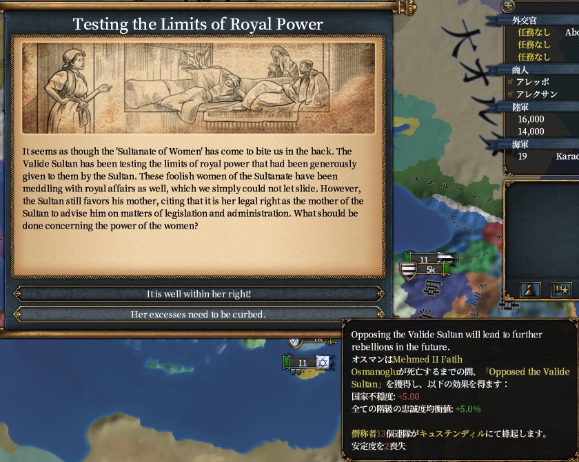 そしてなにより、この補正がある場合に権力闘争国難を終えるとハーレムを残した新オスマン政体に移行できます。