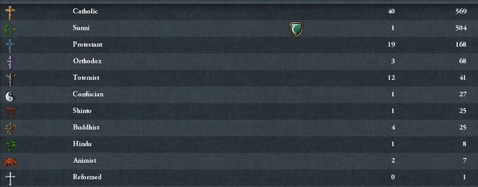 とにかく、州の数に焦ってインド東南アジアという文化・宗教が違う上に、豊かでコア化コストの高いところを終盤一気に抱えてしまったのが反乱祭り最大の要因だった。