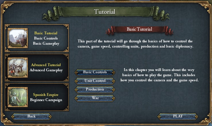 資源生産、移動、及び戦闘の基本的な操作をカバーするBasic Tutorialが初めてには最適です。