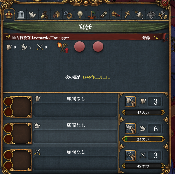 ↑開幕ダメ君主。まあ共和政だから上がりはするが…。
