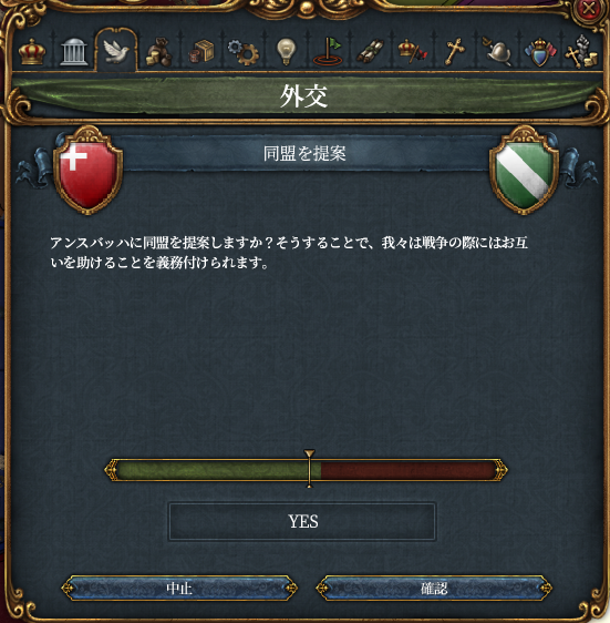 ところで戦争中に教皇様からスイス傭兵の要請(イベント)がありまして教皇様と我々の関係は蜜月を迎えています。というわけで教皇領と同盟を結びます。ついでにヴュルテンベルクを攻めるにあたりアンスバッハとも同盟します。