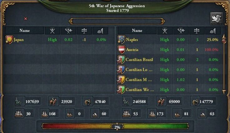 狭いイタリア半島を東西に分断する形で皇帝軍を迎撃した日本は、1781年ナポリからローマを割譲させた。
