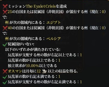 ということは、オスマン以外でこのイベントを完了した場合、オスマンの国難関連のミッションは貰えず、その国に適合するミッション*6に切り替わります。