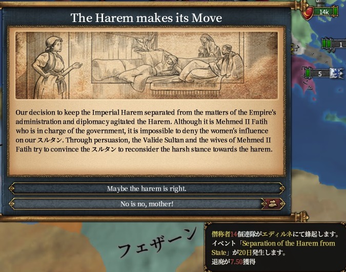 これを達成するとイェニチェリと交渉かイェニチェリとの対峙(バルカン)のディシジョンを使えます。