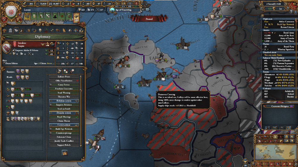 これは、旧時代の制度で、我が国の勢力拡大に蓋をしてきたAnbennar帝国を解体する、絶好の機会と思われます。我が国の軍事力ならAdean派の盟主に推されることは疑いありません。