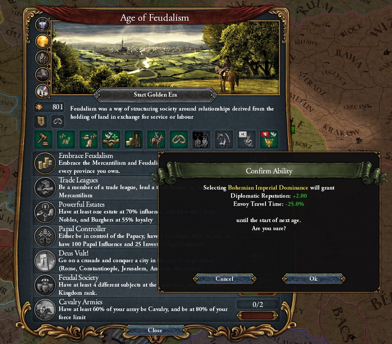 この時代ボーナスは1356MODに特有のもので、ボヘミアだけが選択でき、外交評判と外交官移動日数にボーナスがあります。