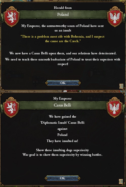 またメイッセンは外交侮辱のCBを得るイベントがボヘミアでおきたためにCBが獲得できました。これはメイッセンには罪がないのですが、ボヘミアは暇だったので彼らに宣戦しています。